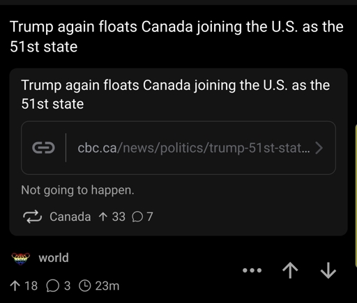 minus-squareslazer2au@lemmy.worldlinkfedilinkEnglisharrow-up3·3 months agoThat is the normal way of showing crossposts in Voyager.