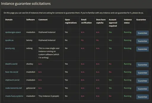 Also reminder if you’re the admin of an instance requesting a guarantee, by specifying who should be your guarantor, you will send them a PM to ask them.